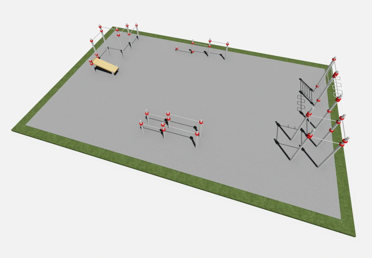 Спортивная площадка включает тренажеры: Ш004, Б003, Т005, СК019.