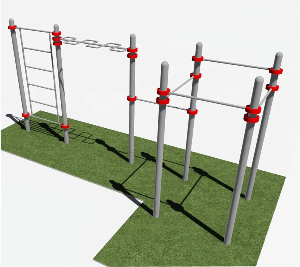 Семь опорных вертикально установленных столбов высотой 2600 мм являются основание для данного спортивного тренажера.